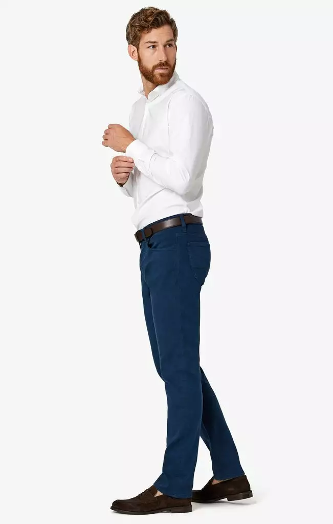 These contemporary blue jeans are disguising the fact that they’re ultra-stretchy, soft, and durable. Cut from colored denim that has added stretch and superior shape retention, these bright, modern pants look distinguished and powerful while feeling effortless to wear from day to night. The higher comfort rise and relaxed fit looks flattering from every angle and provides just the right amount of room to move freely and easily.