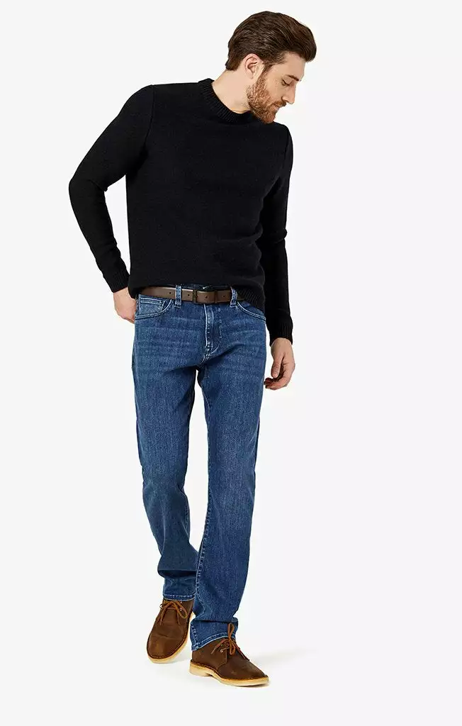 The engineered fit of this pair of pants is perfect for the man seeking a distinguished look without compromising on comfort. They are cut from smooth, premium denim that features superior stretch and shape retention in a versatile wash that’s effortless to wear while enhancing the streamlined silhouette. A contemporary fit that’s endlessly flattering, these have a mid-rise and tailored straight leg that features subtle tapering from the knee down.