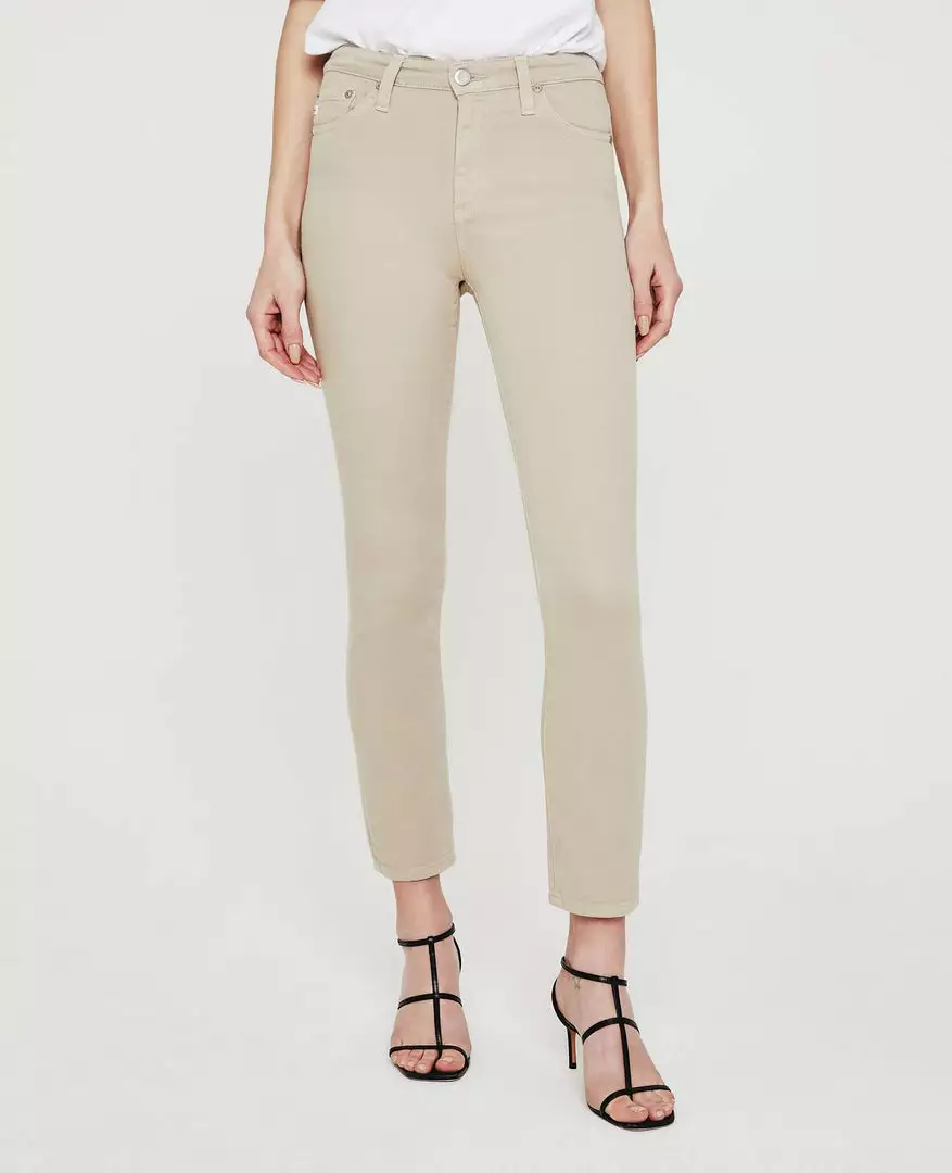 The Mari high-rise straight leg jean for women, updated in a soft beige shade. Cut with a flattering high-rise waist, Mari has an easy fit around the hips, straight legs, and subtle slim leg openings. This women’s straight jean is designed in 8.7 oz. Hyper Soft White Bull Denim with figure-hugging stretch.