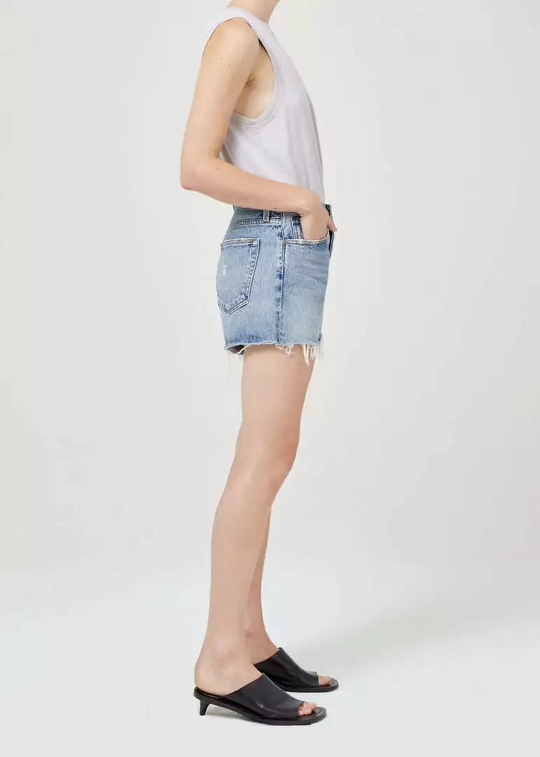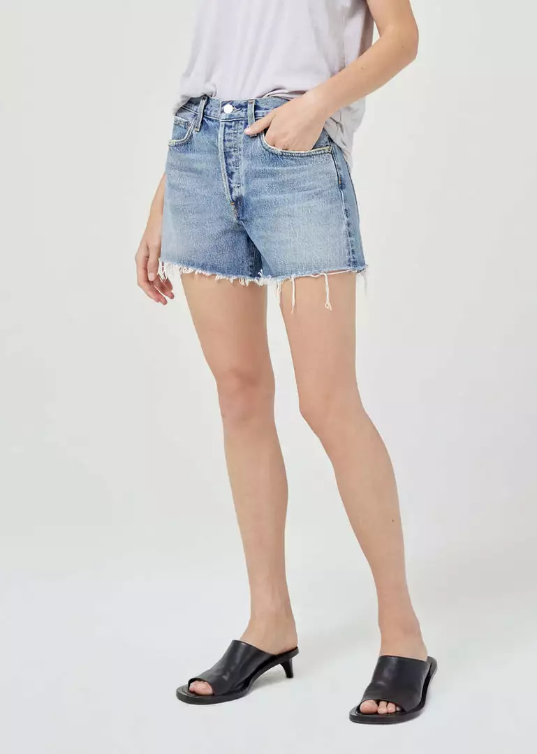 Looks Like: Medium indigo with a raw hem
