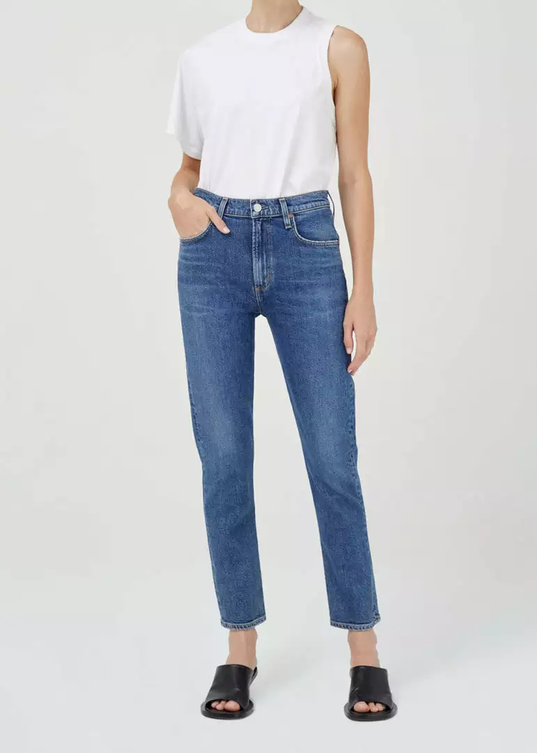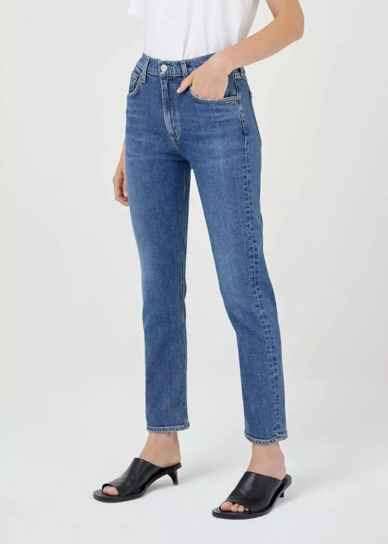 This mid-rise is cut with a slim-straight fit. Crafted from low stretch denim.