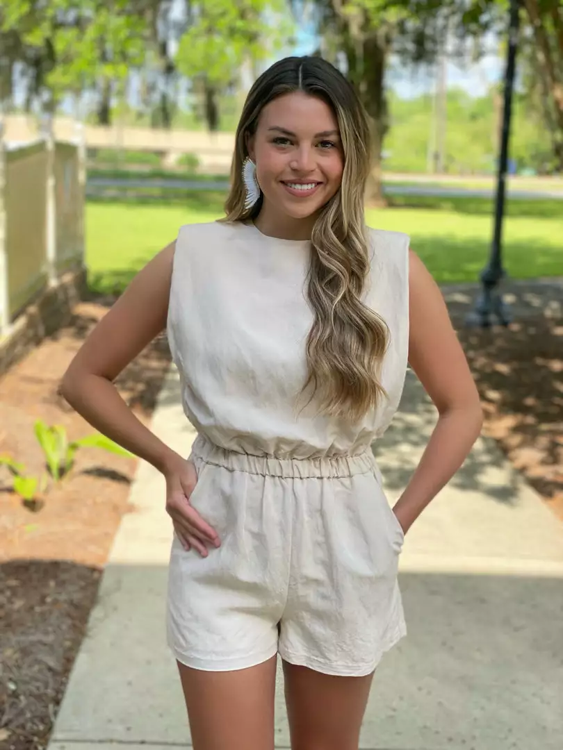 The Kent Romper is the perfect spring and summer romper. This flowy romper features a crew neck, elastic waist, shoulder pads, and hook & eye closure. Pair this romper with heels and gold jewelry for the perfect brunch date.