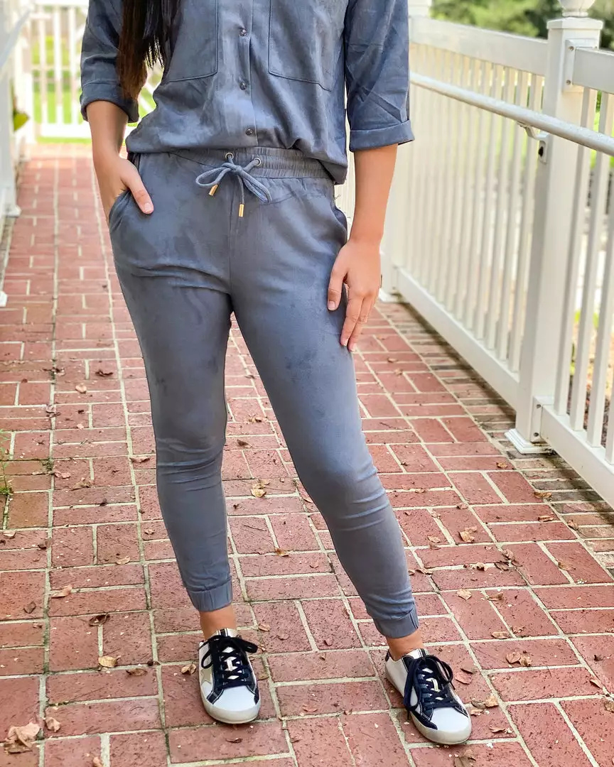 The perfect jogger that pairs seamlessly with the suede button front top!