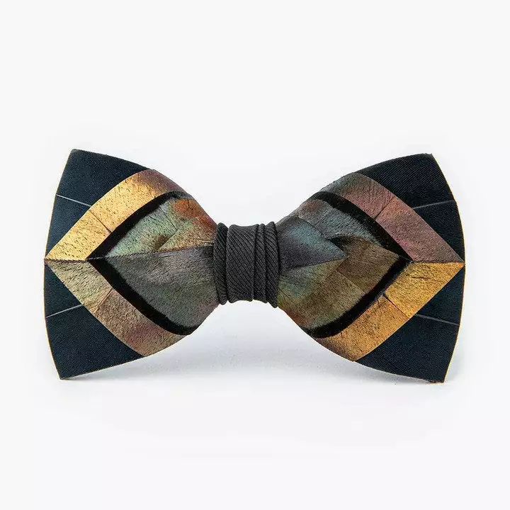 - Feathers for bow ties are hand-selected, giving each finished piece unique coloring.