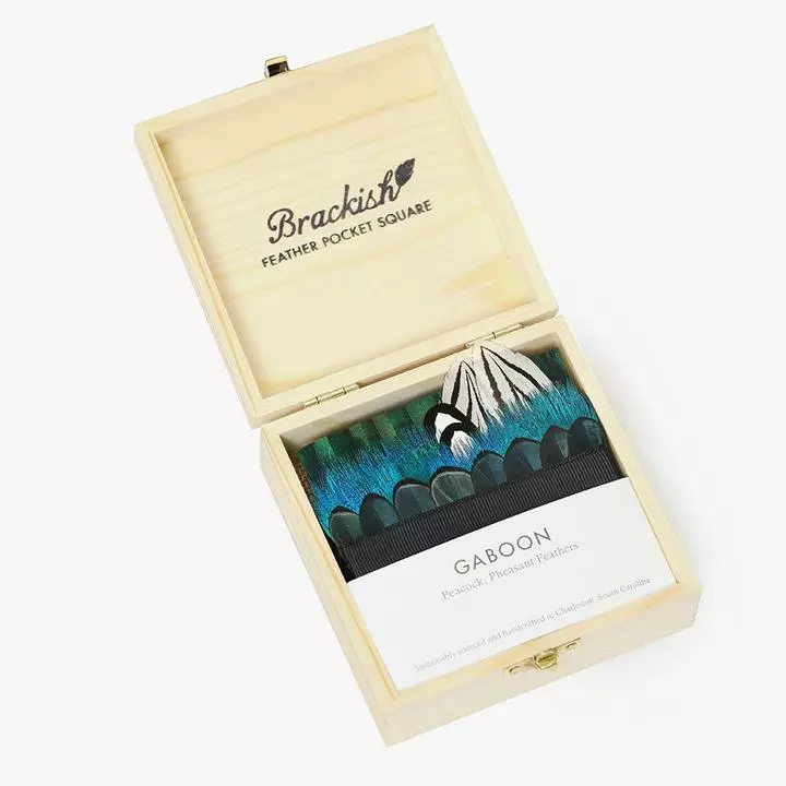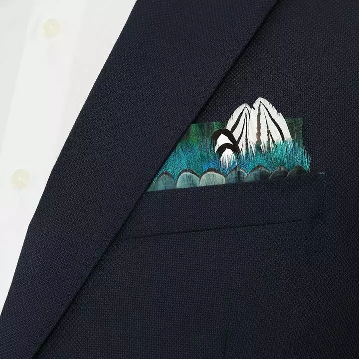 - Feathers for each pocket square are hand-selected, giving each piece a unique coloring.Â