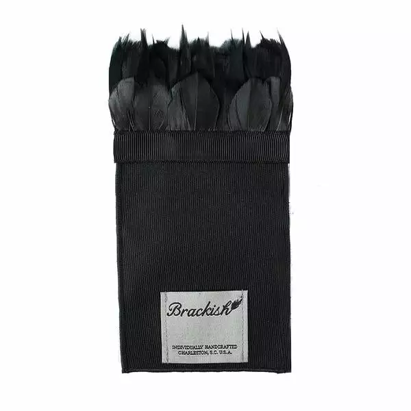 Product Details | A completely bespoke feather pocket square made to fit any pocket size. Wear it parallel to your pocket, or with one corner creating a “peak” popping out. Control how much of the feather panel shows by pushing it deeper into the pocket. The Obsidian is a perfect complement to the Rice bow tie.