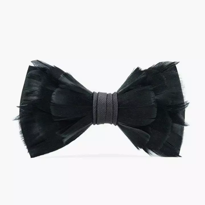 Our all-time best seller, Rice is made with jet black goose feathers. A special technique gives this tie a slightly ruffled look, adding interest, depth and dimension to the traditional black bow tie. Center wrap is black grosgrain.