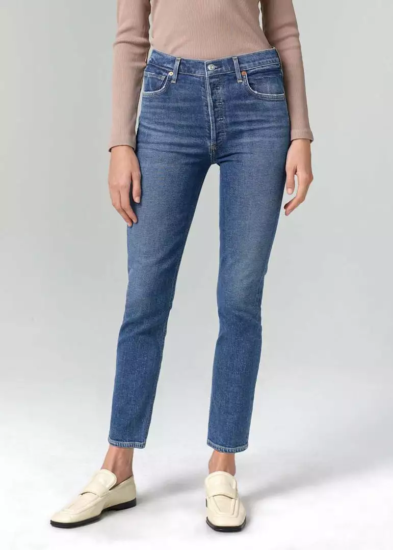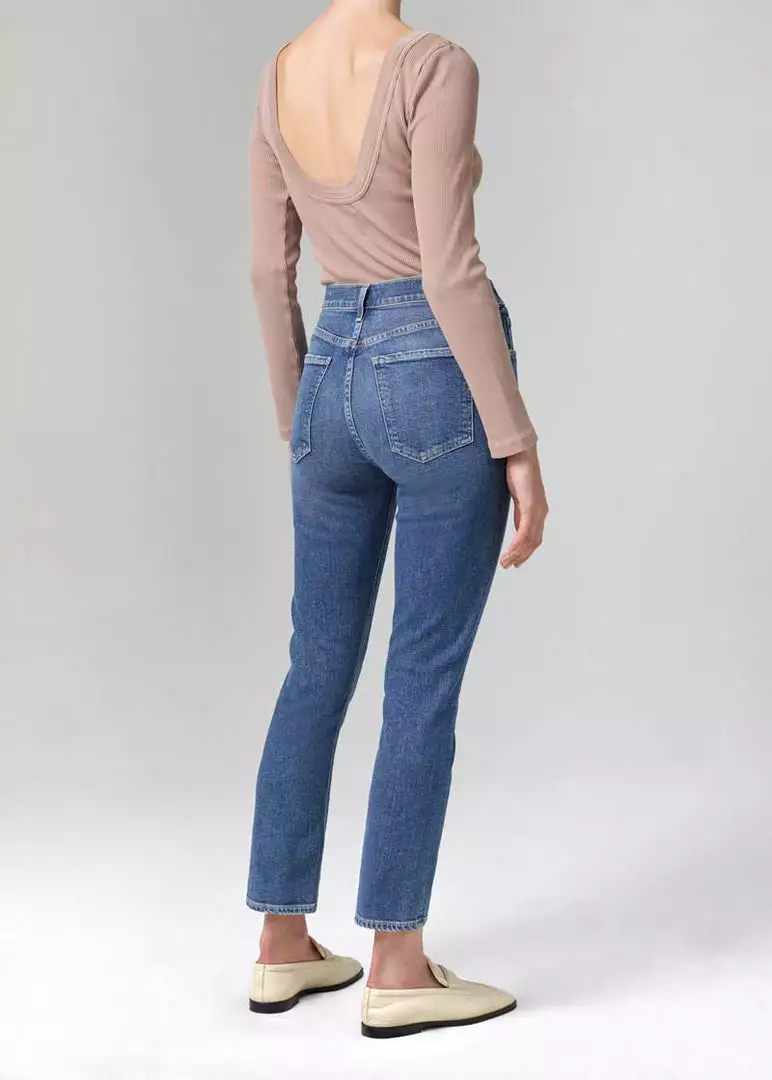 A 90’s-inspired fit with a perfectly broken-in feel. Designed with a flattering high-rise and classic straight leg.