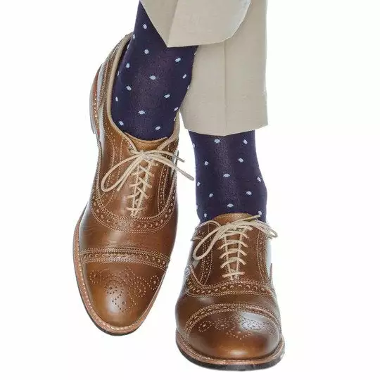 Dapper Classics socks are expertly knitted in North Carolina at a third-generation mill. Every sock is made with style and comfort in mind, guaranteeing that you look and feel your best. Our dot socks are an understated way to add flair to your footwear.
