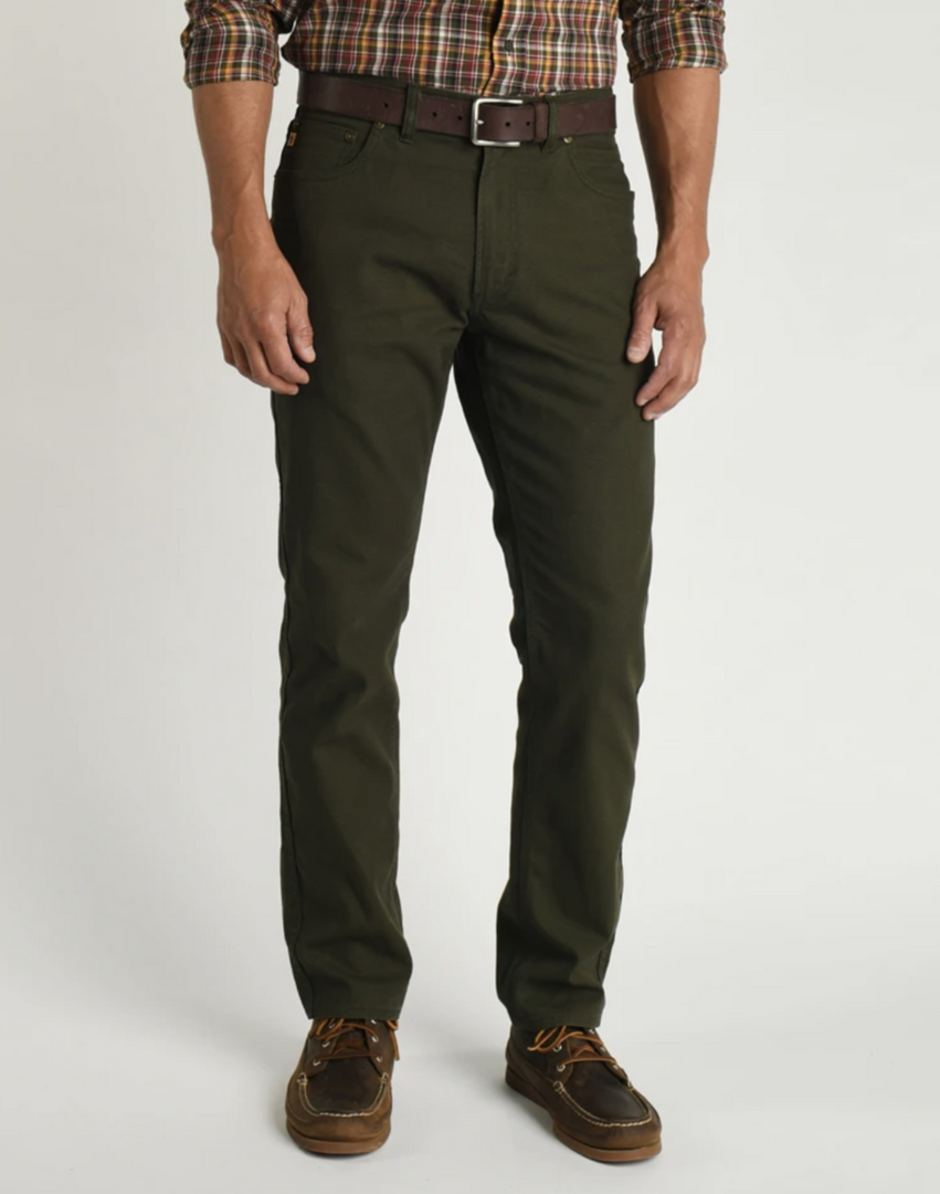 Our Field Canvas Five-Pocket taps Duck Head’s rich 150-year history in both spirit and design. Familiar are the signature details borrowed from our Gold School Chino to include branded buttons, leather patches, and fortifying tacks. The 9.4 oz canvas functions with 2% flex through key stress points while being slightly heavier than our traditional 7.1 oz Pinpoint Canvas Five-Pocket. A proprietary fabrication assists in regulating the temperature of the wearer by keeping cool in the heat but warm during cooler temperatures. The classic fit mirrors the Gold School Chino and wears perfectly with a boot, shoe, or loafer