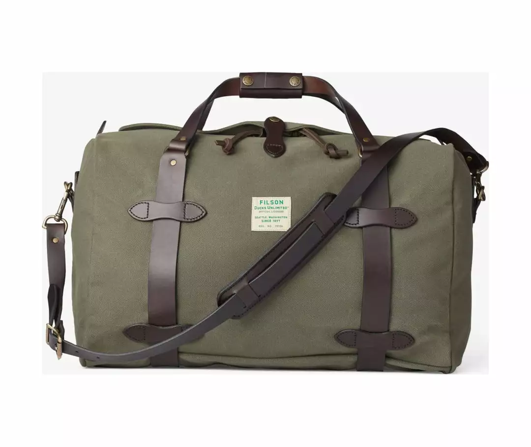 Made with our signature Rugged Twill, this weather-resistant Medium Duffle Bag can take a beating. Features an officially-licensed label in support of Ducks Unlimited. Outfitted with saddle-grade Bridle Leather accents and an adjustable, removable shoulder strap. Sized to meet airline carry-on size requirements. Limited edition.