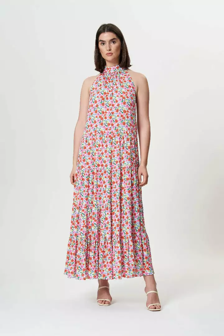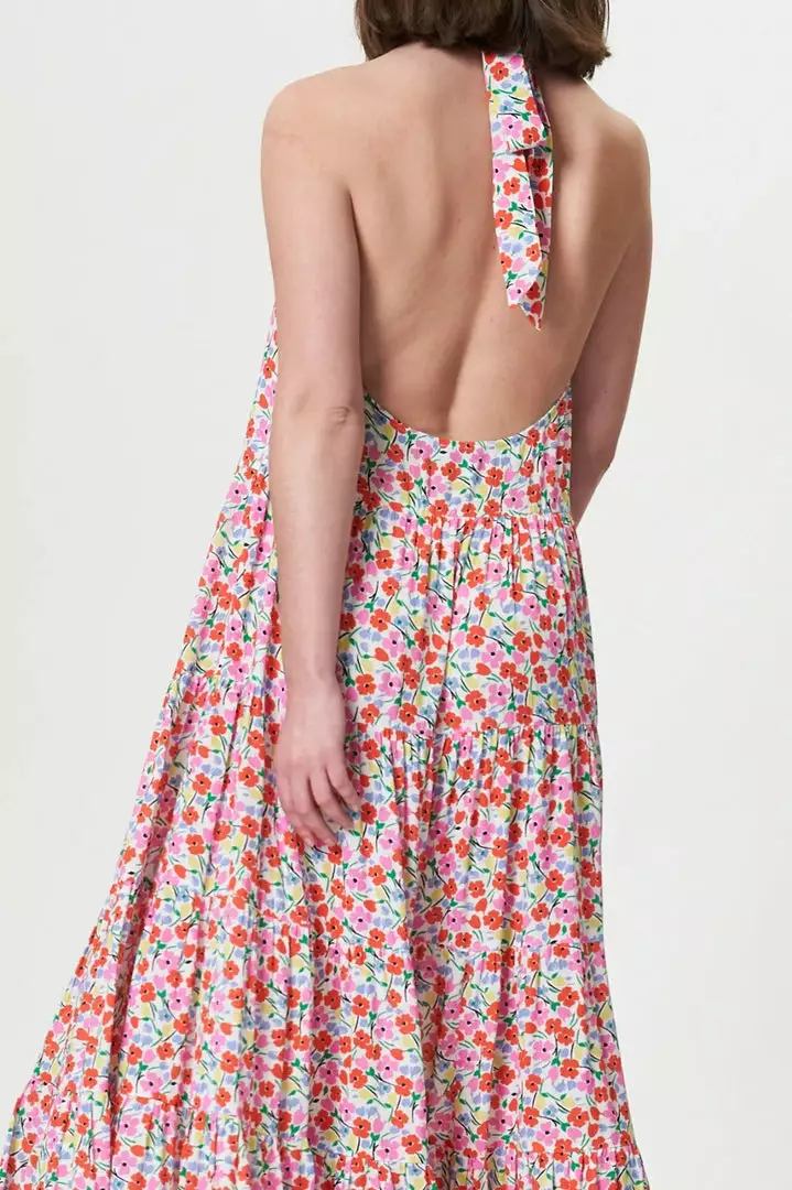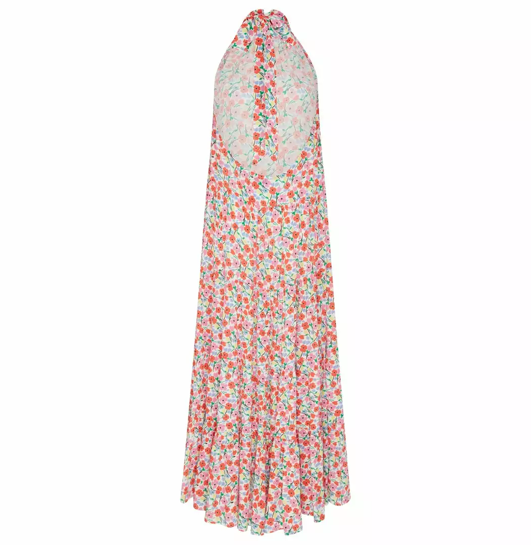 Our iconic, best seller Azra Dress is made in another best seller print with a white background this time. Summer Ditsy is your ultimate mix of whites, pinks and reds in high-summer nights and weddings. Made of a dramatic open-back in a round shape with a chunky halter tie. The skirt is gathered with tiered panels in a flattering maxi shape and length. This easy slip-on dress with sling baring back will keep the eyes on you!