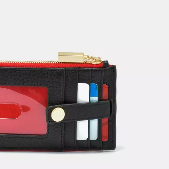 - Credit card slots, snap and zipper closure