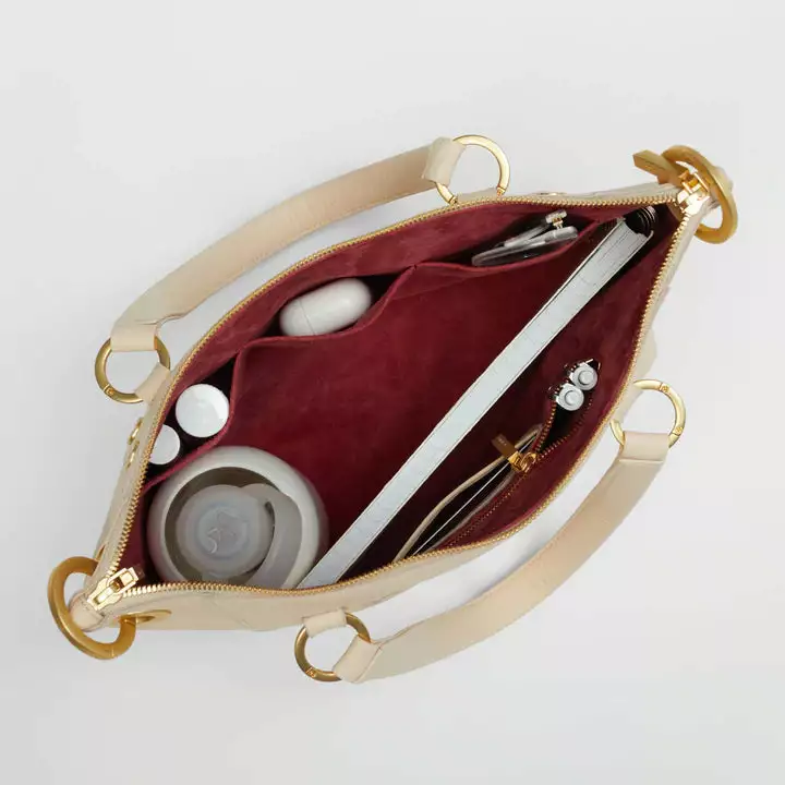 - 14″ x 4″ x 9.5″Handles: 1″W x 6″ DropCrossbody Strap: 1.75″W x 14″-21.5″ Drop