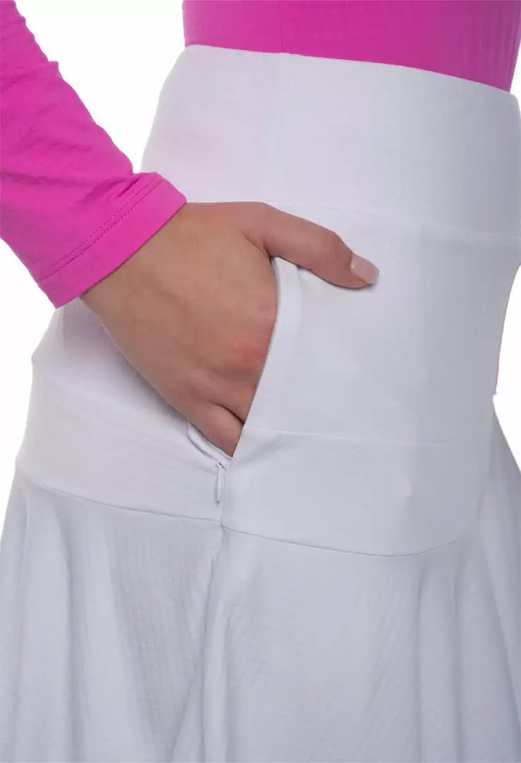 Flirty, fun, and functional, our new Knit Skort is designed to reduce moisture buildup on the skin and help regulate your body temperature. Stay active and comfortable in our IceFil technology for additional cooling benefits. The wicking fibers naturally reduce your overall temperature by 5 degrees by converting sweat into refrigerant. The additional pockets at the front and rear are perfect for a game of tennis or an evening stroll with your pet.
