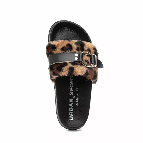 The ultimate pool slide but make it fashion. Ours is a faux fur upper with a double buckle detail adding to its aesthetic.