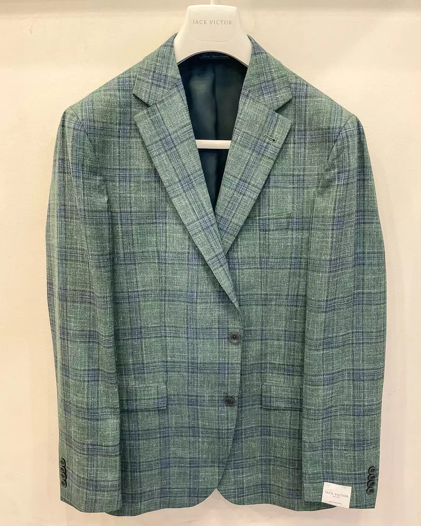 Turn heads this season with this Green and Navy plaid blazer. Made with luxurious Super 120’s 100% Wool, it is available in our lightly constructed Midland model perfect for desk to dinner. Built for the modern man, the Midland features a contemporary fit that is comfortable in the chest and shoulders with a tapered waistline for a clean silhouette.
