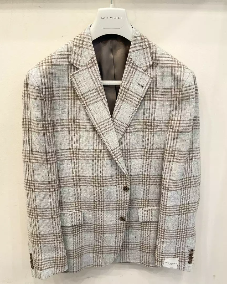 Turn heads this season with this light Khaki/Oatmeal plaid blazer. Made with a luxurious blend of wool, silk, and linen, its colors embrace the brightness of spring making it perfect for dressing to impress at your next social gathering. Cut in our lightly constructed Midland model, it’s built for the modern man in a half-lined contemporary fit that is comfortable in the chest and shoulders with a tapered waistline for a clean silhouette.