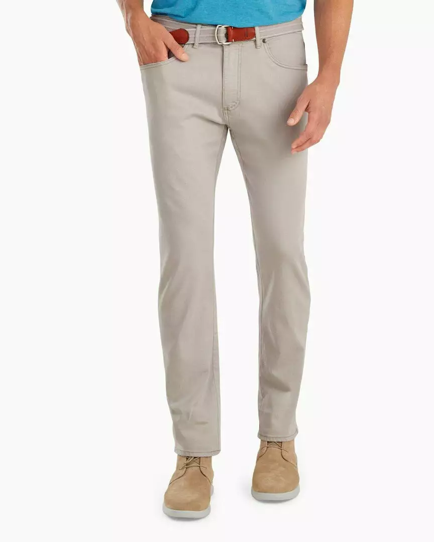We went all in on these new 6-pocket pants. They have just the right amount of stretch and can be dressed up or down. Available in garment-dyed colors.Â