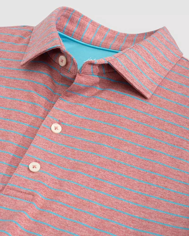 This classic polo features a heathered stripe and our signature embroidered logo on the back.