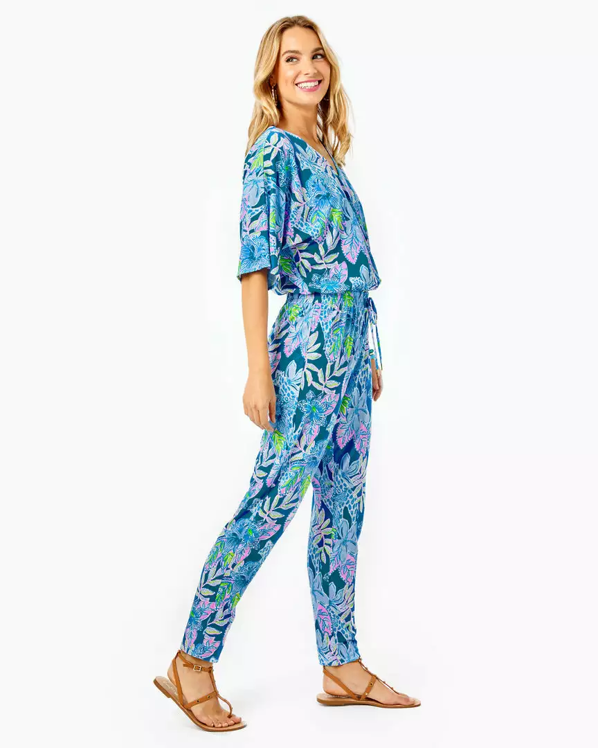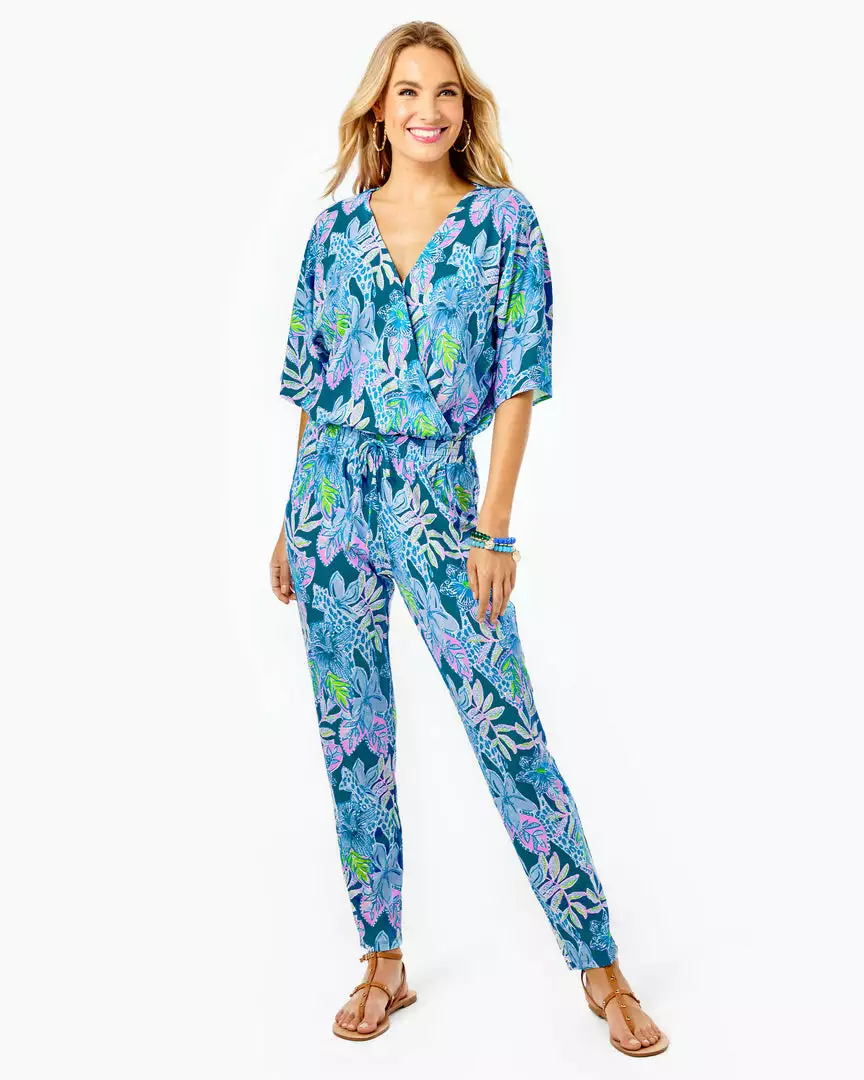 The beauty of our Merrick Jumpsuit is that its ease-of-wear looks so effortless. This chic style is made from a fabric mix of rayon, spandex, and jersey that gives it a soft feel. A surplice top portion leads to the elastic waist that tops tapered legs. The final focal point is the vivid Lilly print that looks as crisp as a real blue sky. From shoulder-to ankle, this jumpsuit is a delight.