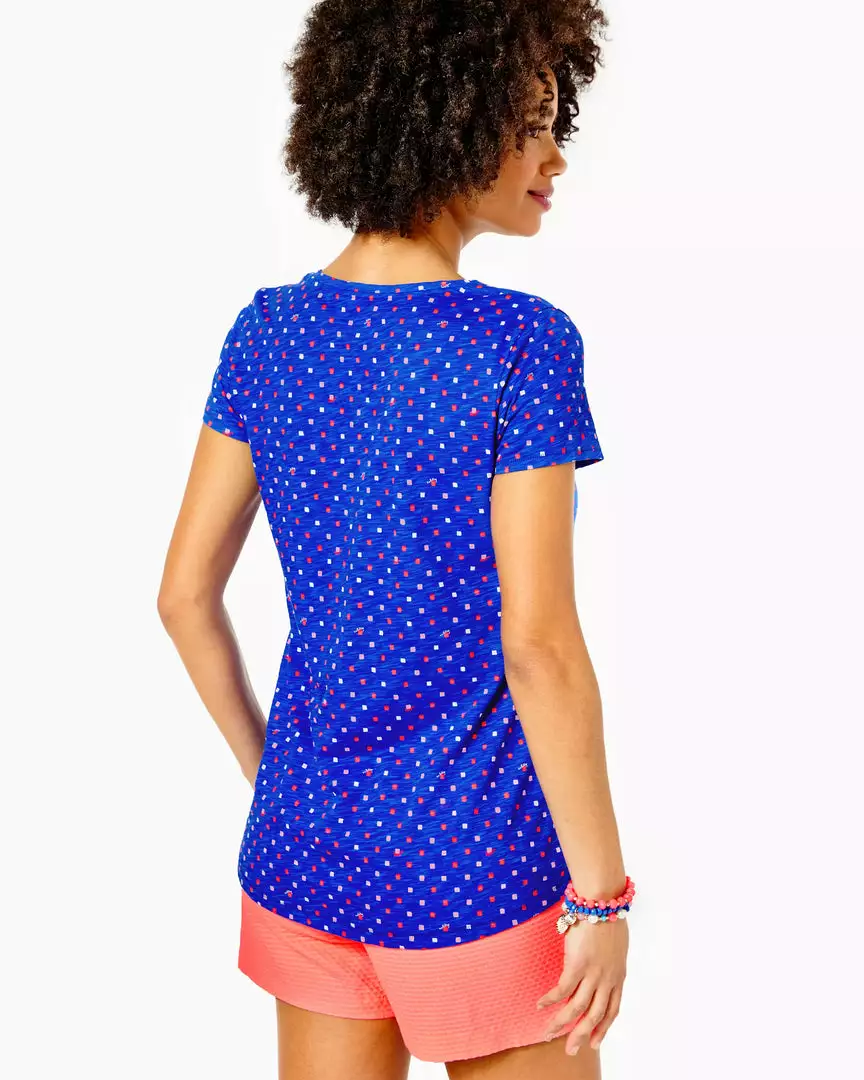 Our effortless Etta V-Neck Top is a short sleeve, v-neck tee in a machine washable slub jersey. In custom colors, this easy fit t-shirt pairs perfectly with printed bottoms.