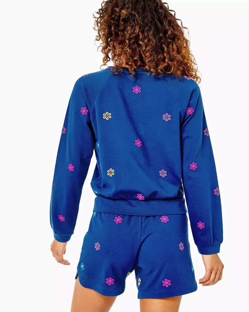Our Landyn Embroidered Sweatshirt takes your loungewear game to the next level. With terry fabric and an easy-fit style, this sweatshirt offers a soft feel and a relaxed look that are enhanced by 3/4-length sleeves and a bottom band along the hem. But the true gamechanger is the vibrant custom embroidery scattered all over the design. Relaxation never looked (and felt) so good.