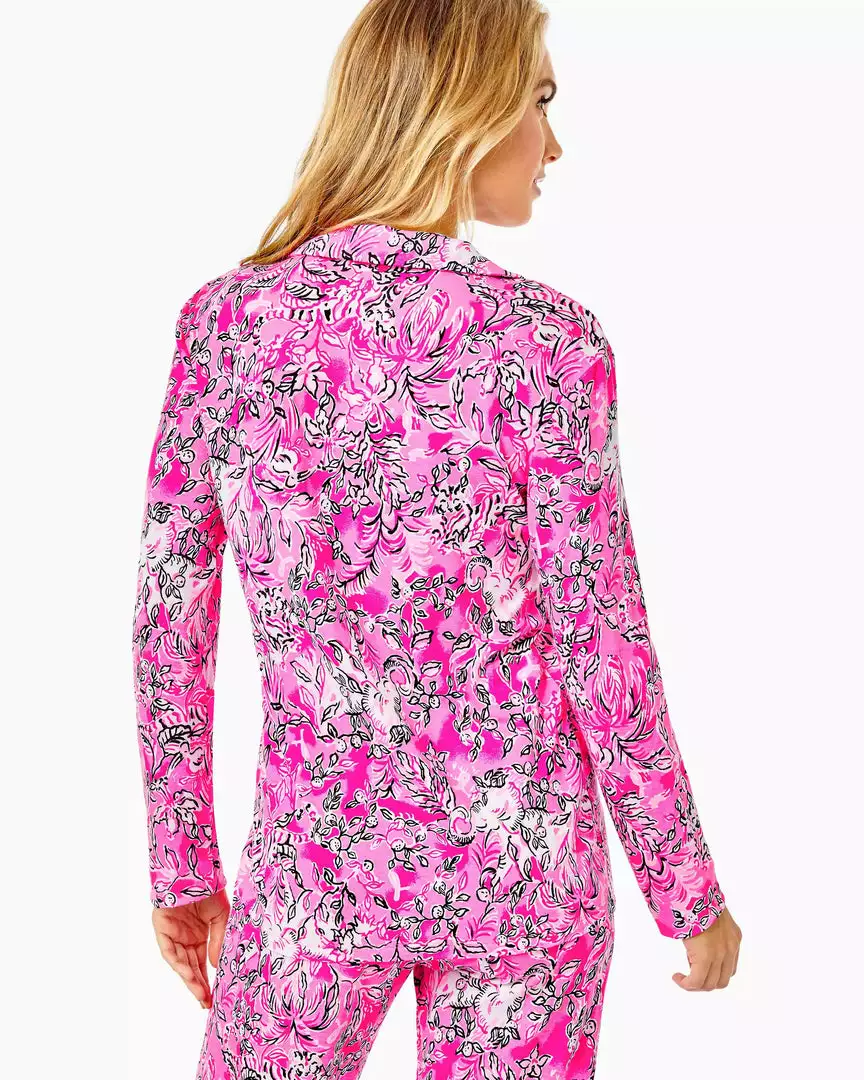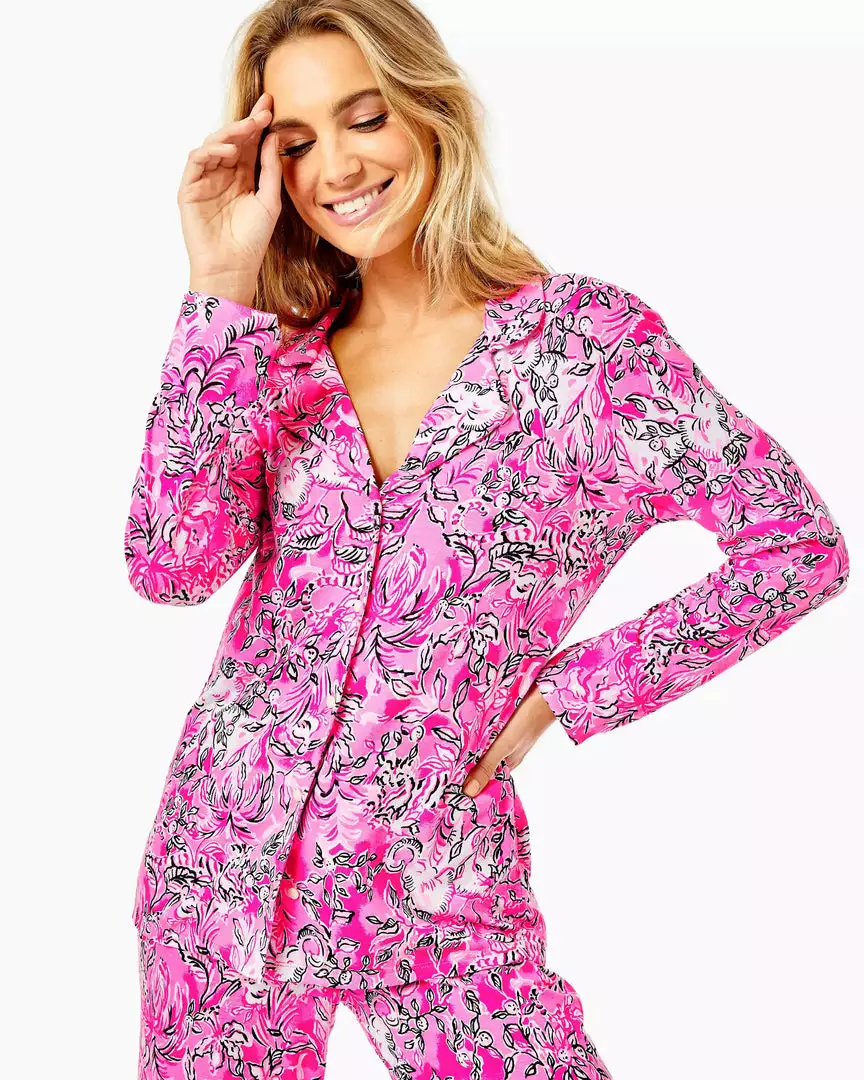 Stay toasty and on-trend this season in our PJ Knit Button-Up Top. The straight fit style with long sleeves, a button front, and washed knit fabrication is a dream to cuddle up in every night. We bet you’ll wake up ready to greet the day with a smile thanks to its fresh, fun Lilly print. Looking for the perfect treat for a Lilly fan? Give them this–but don’t forget one for yourself, too.