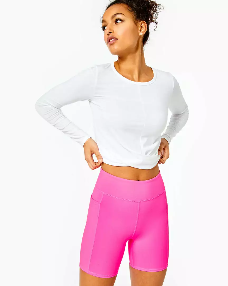 A short and sweet take on our most beloved leggings, the Weekender High-Rise Short offers UPF 50+ sun protection and moisture-wicking thanks to Powerstretch fabric. A side pocket holds your phone or keys, and the bright Lilly print looks great with a solid top or tank.