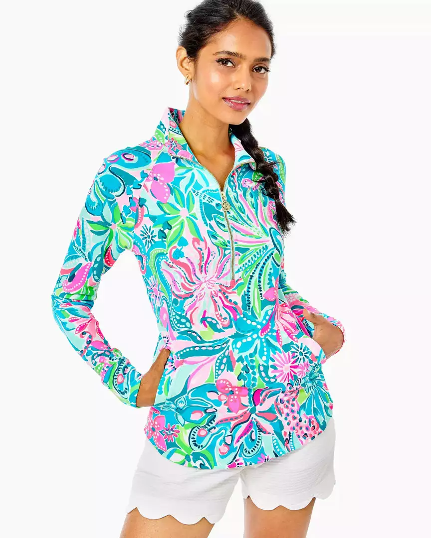 As an activewear staple or brisk morning layer, the Skipper packs plenty of versatility. A high neckline keeps the chill away while UPF 50+ fabric protects against harmful rays. The cotton blend terry fabric is infused with silky modal for superior softness. A half-zip design lets you control your temperature in this curved hem popover.