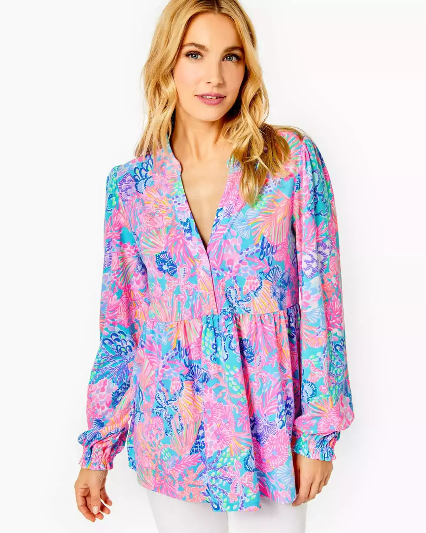 An everyday favorite dressed up in print, our Winona Knit Tunic Top features pullover styling and long sleeves. A swingy fit and soft jersey fabric make this machine washable top exceptionally easy and breezy. Wear with white denim for a timeless look.