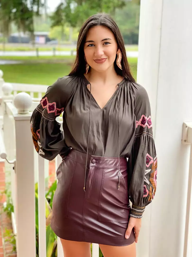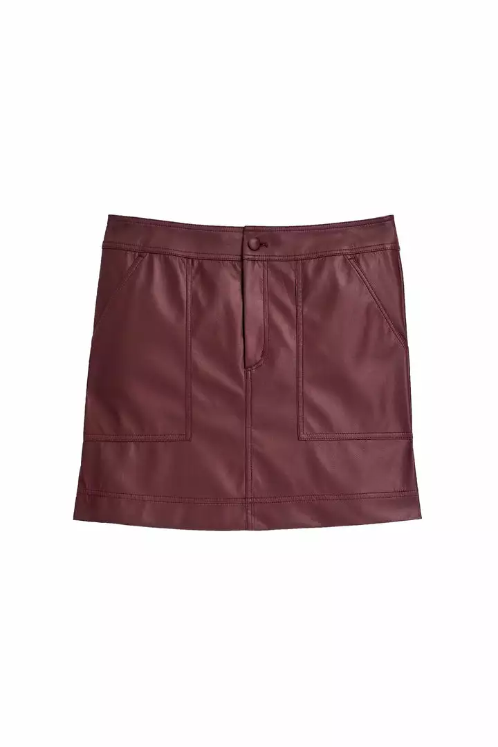 Everyday elegance with an edge: That’s the Braden. Made from 100% vegan leather in a deep wine-colored hue, this figure-flattering skirt is a must-wear for fall. Pair with our peplum belt to dress it up for a night out.