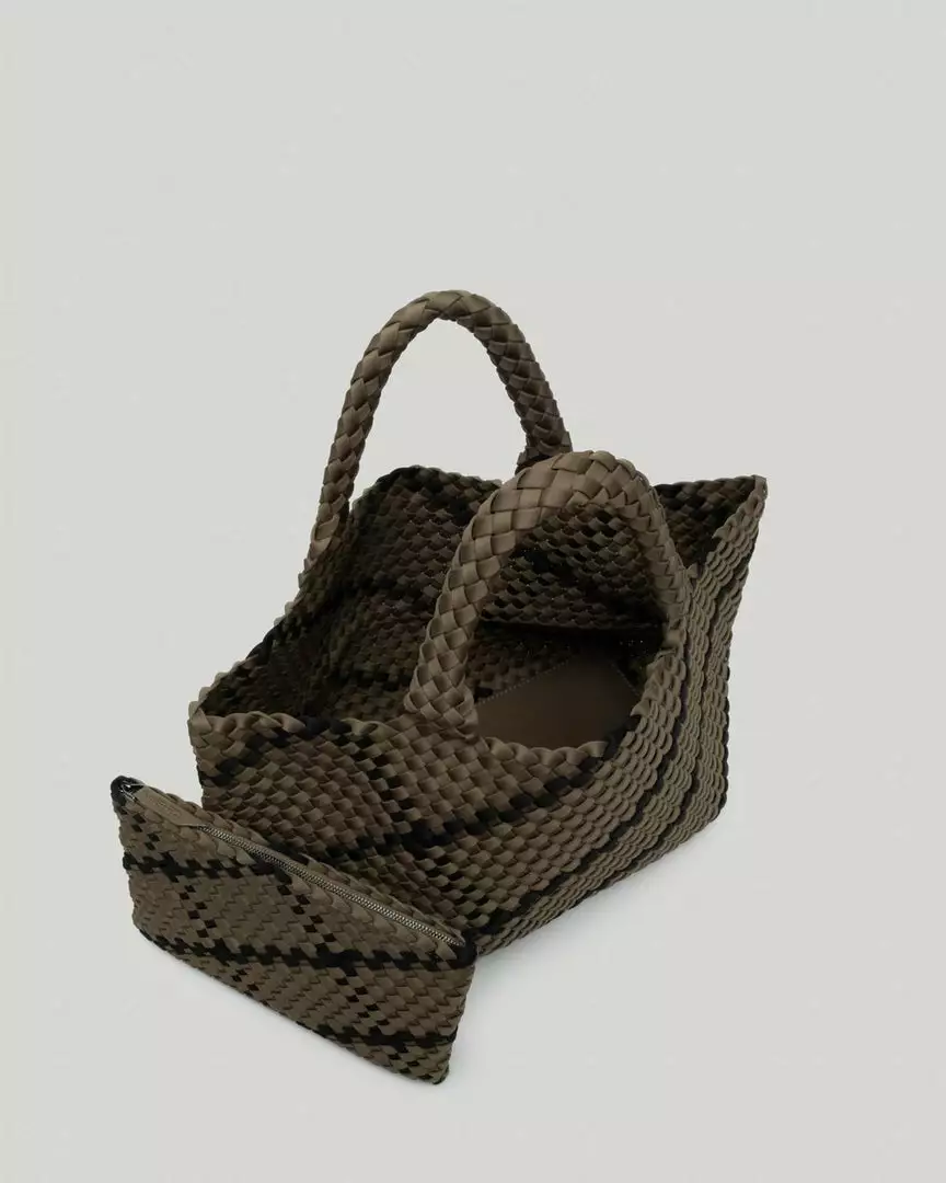 Our bestselling classic St Barths Medium Tote is made from handwoven strands of neoprene. Use the matching pouch to stash your essentials or as a clutch for a night out!