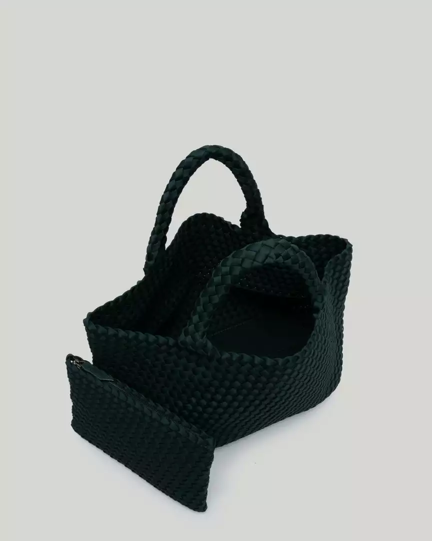 Our bestselling classic St Barths Medium Tote is made from handwoven strands of neoprene. Use the matching pouch to stash your essentials or as a clutch for a night out!
