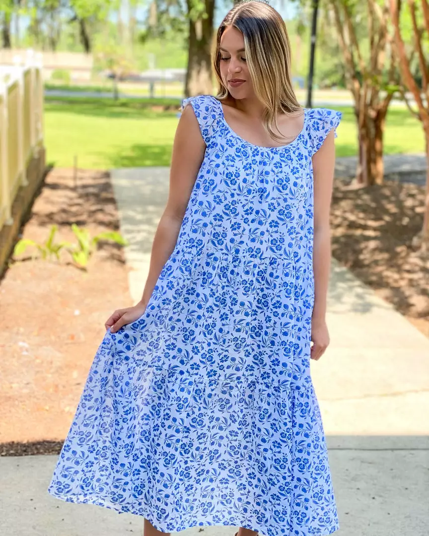 Our new Milly Dress will have you leaving the house in style. Her flutter sleeve and flowing tiered bodice create the perfect dress for a day around town. Pair her with your favorite sandals, or dress her up with a fun wedge.Â