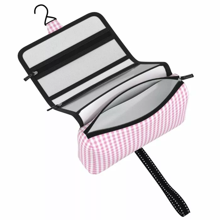Multifunctional is best when it comes to toiletry bags. Whether you’re on the go, or using products at home, a hanging option is essential to convenient storage. Simply fold the bag (like a burrito) when the hanger is not in use.