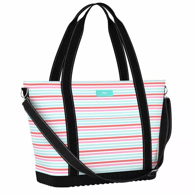 A large, soft cooler you can sling over your shoulder like a tote bag? Sign up here! The molded bottom stands up to any surface and it comes with a long, detachable strap for carrying versatility. Not just reserved for snacks and drinks either.