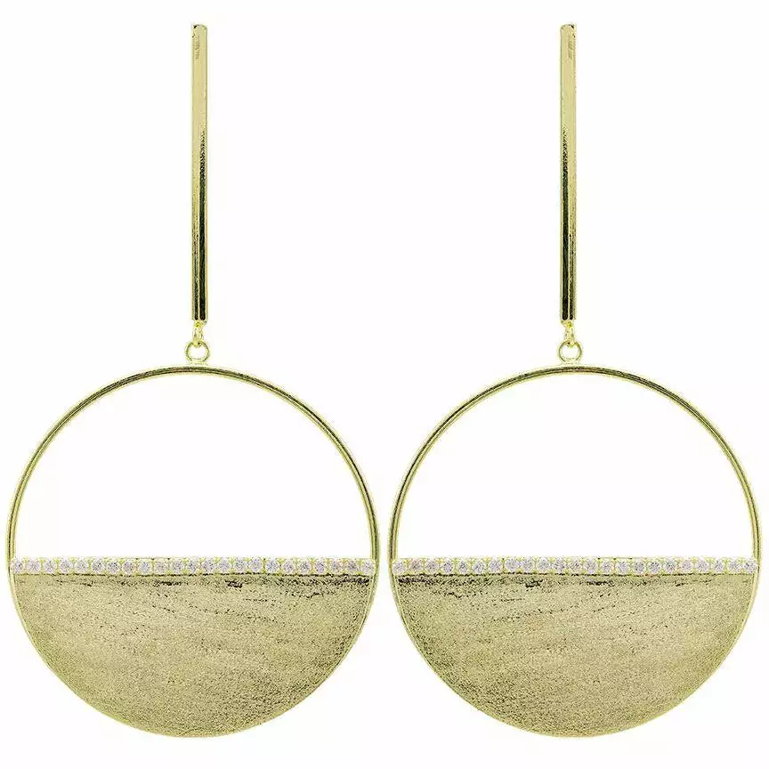 Handmade in Brazil. These are the “Embellished” version of our Avalon Earrings. Highlighted with a sparkling line of CZ’s across the half circle. Absolutely a stunning addition to your collection. You’ll want both styles!