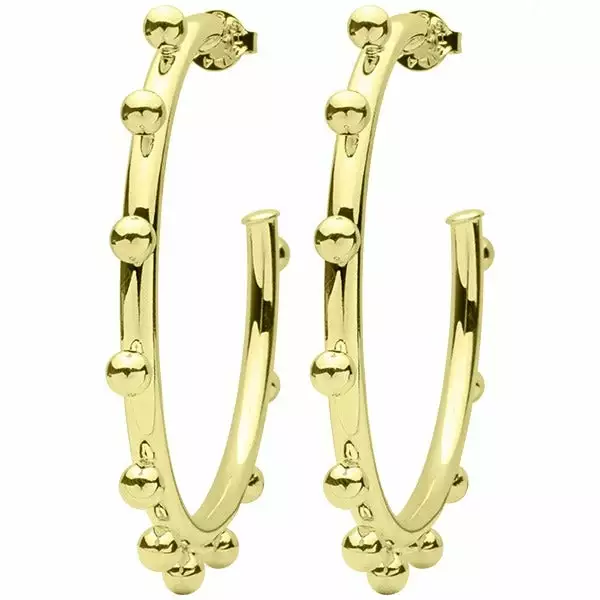 Handmade in Brazil. These Beaded Everybody’s Favorites will be your NEW Favorites! Our Famously Classic Everybody’s Favorite Hoops are embellished with Shiny Gold Beads to create a dazzling statement for your collection!