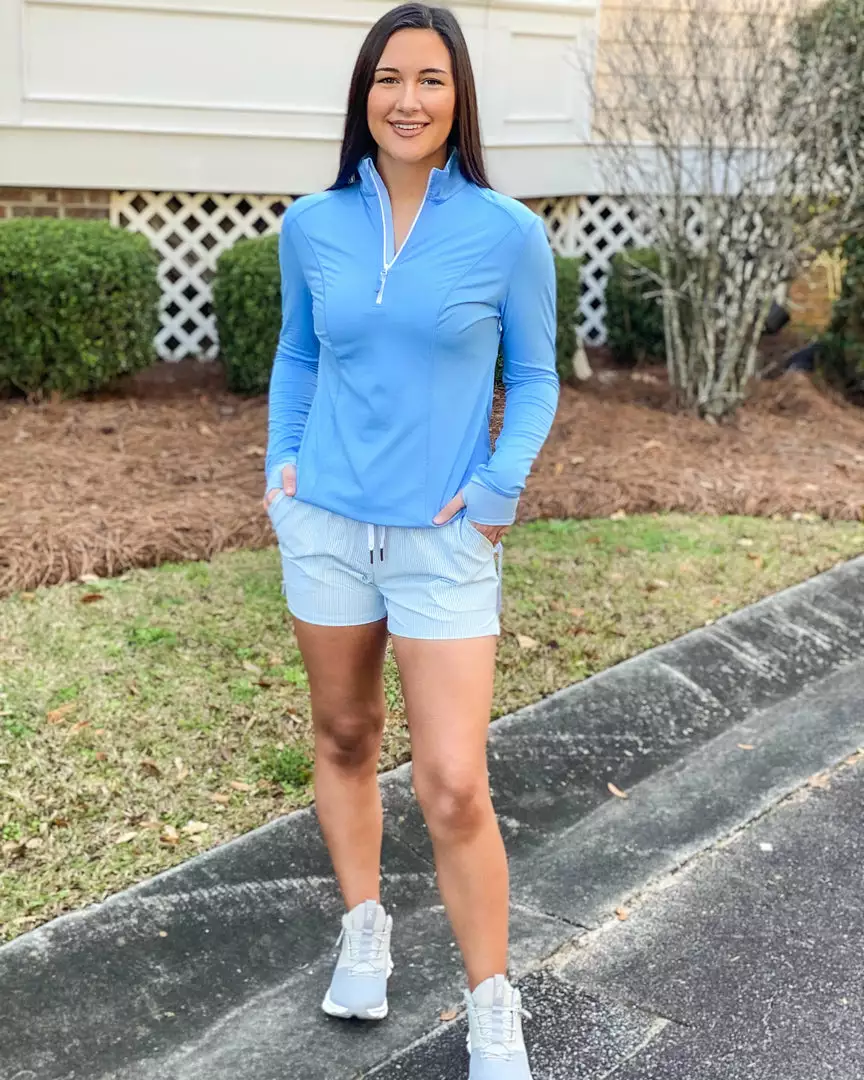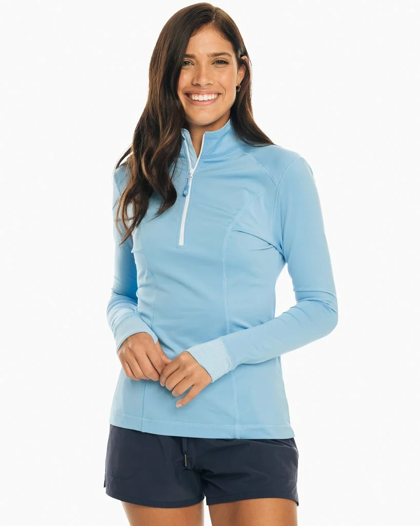 Mornings on the coast can be cool. Try our women’s performance quarter-zip pullover for your next early run or outdoor yoga class. Breathable fabric wicks moisture while you get your sweat on.