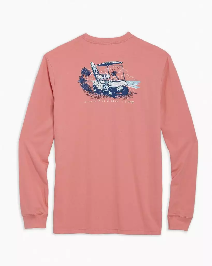 Our coastal lifestyle inspired long-sleeve t-shirt celebrates joy rides on the golf cart by the beach.