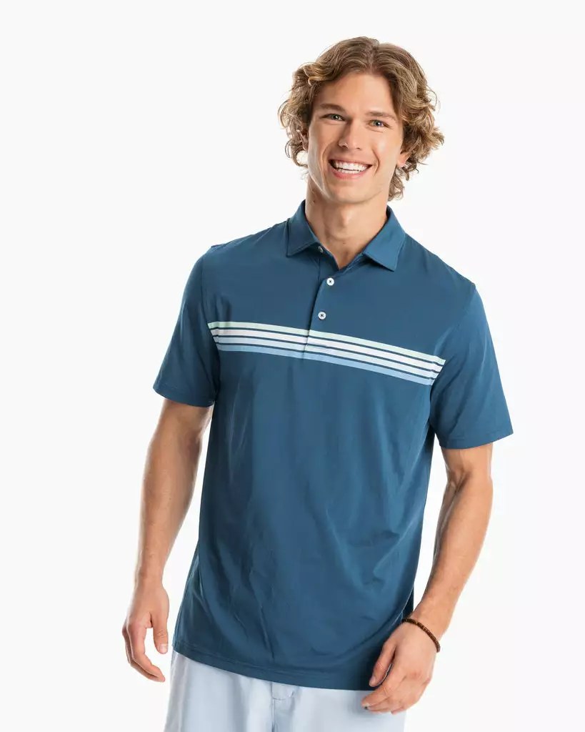 The Driver chest striped men’s polo brings style to your golf game. Four-way stretch and moisture-wicking technology keep you dry and comfortable all day long.