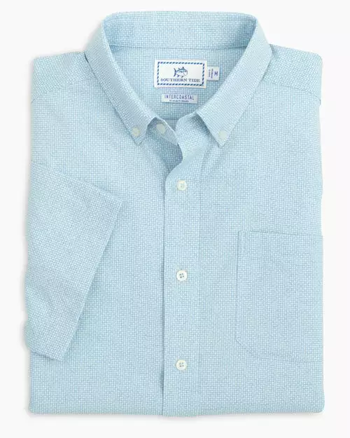 This printed short sleeve button-down shirt for men reminds us of good times at a by the water. Built-in performance UV protection and moisture-wicking technology keep you feeling fresh, too.