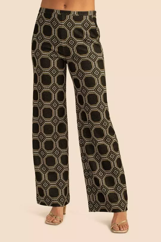 Shimmering gold pops against rich black in our new stretch fabrication, Glitz and Glam Geo Knit Jacquard. This chic, wide-leg pant features a flat front, a drapey wide leg, and – our favorite – pockets! In our stretch knit, this pant is also packable and travel-friendly for wherever the holidays take you.