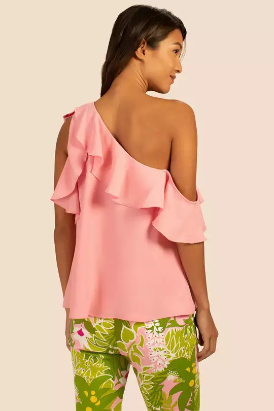 Floaty ruffles add instant femininity to this sleek one-shoulder top. Pair this ruffled top with patterned pants for a fresh spring look.