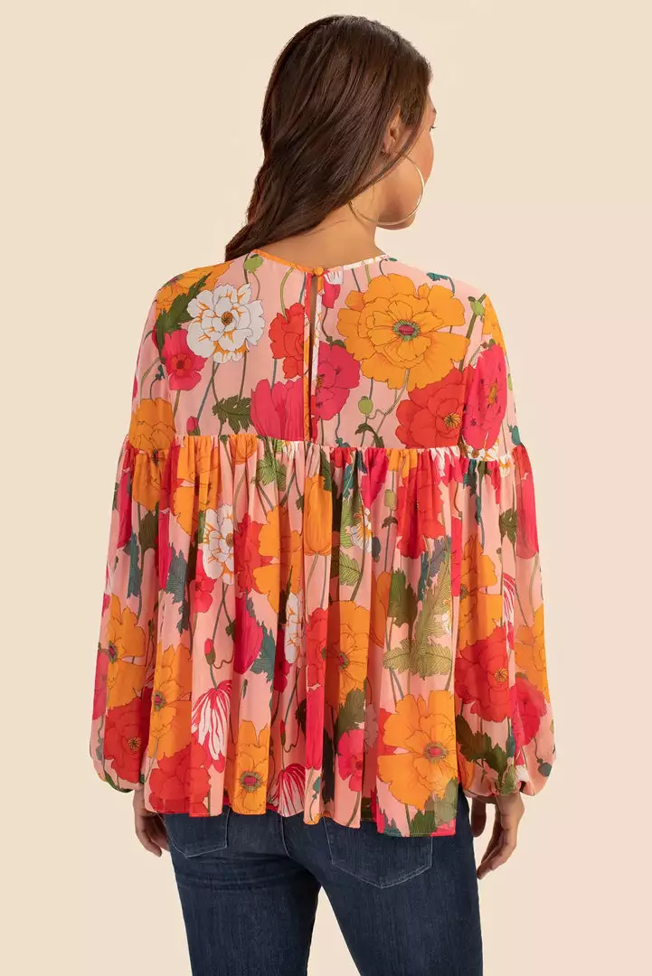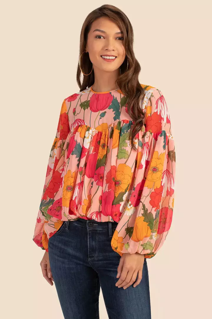 Elevated and chic, this long-sleeve top features voluminous balloon sleeves, sweetheart stitching, and a wide, A-line silhouette. Pair this flowy, floral top with jeans for a night out or with white pants for a getaway-ready look.