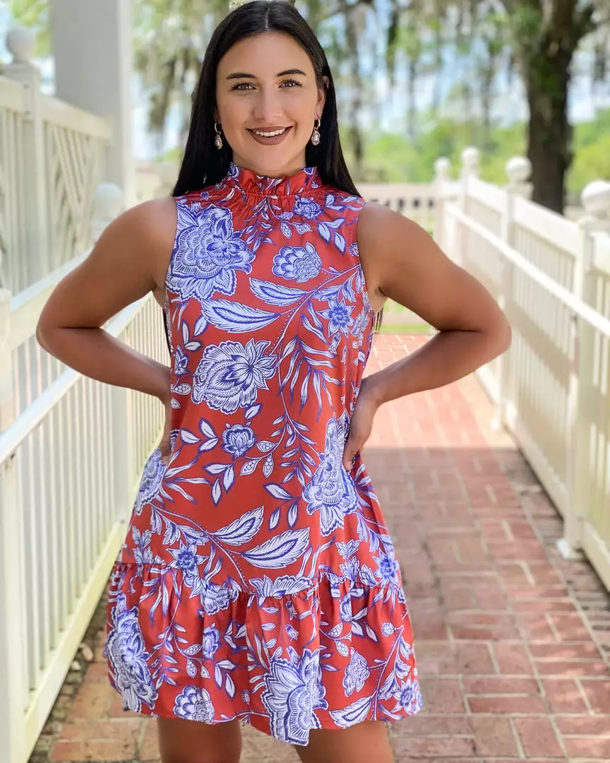With a chic mock neckline and cute flounce at the hem, this floral dress is ready for warm days in the sun. Made from 100% cotton to keep you comfortable and cool all day long.